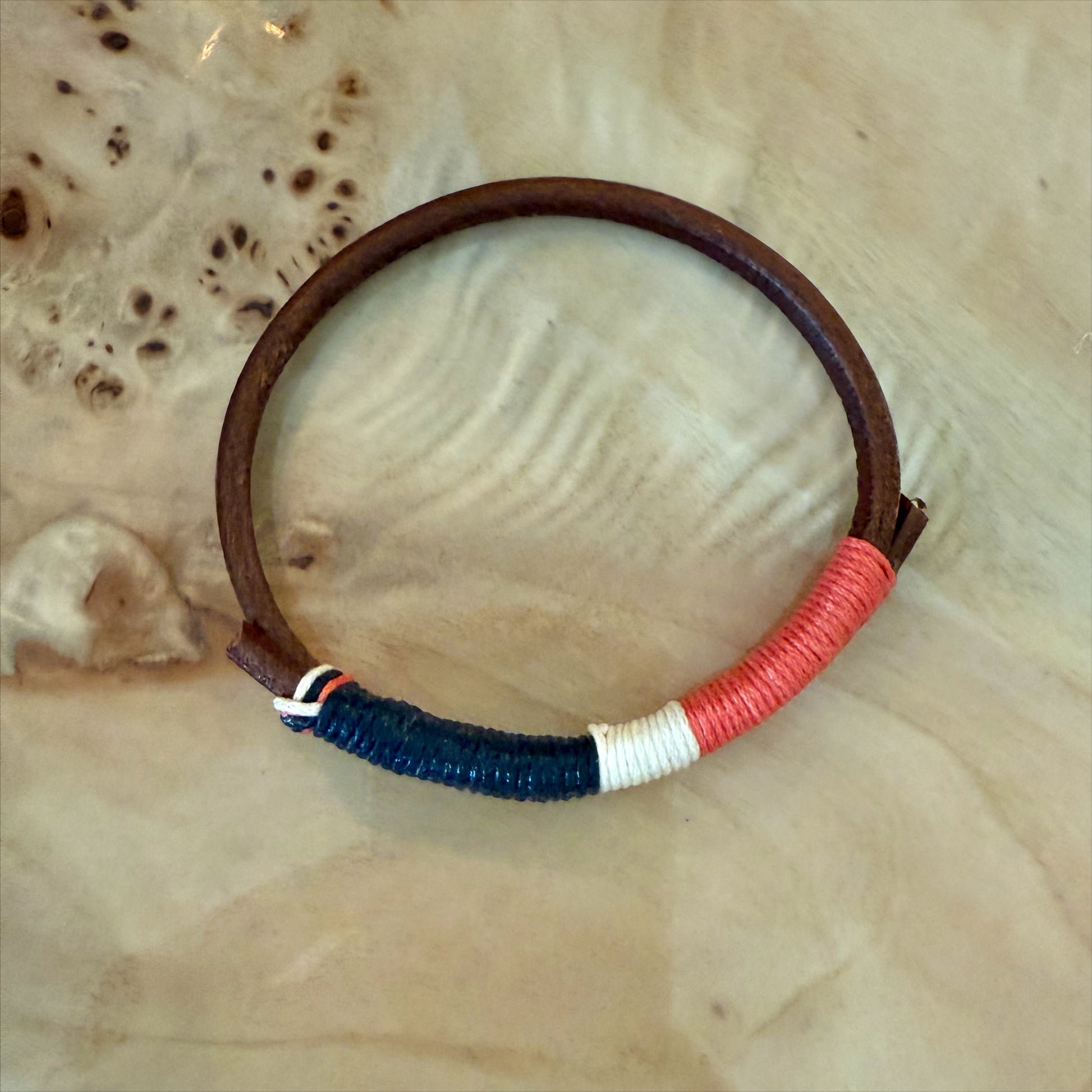 brown leather wrapped navy, pink and cream!